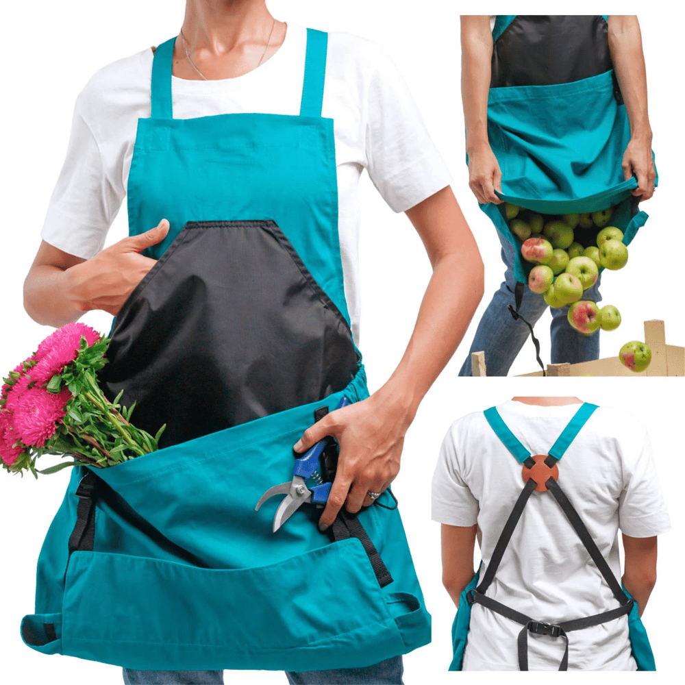 Diese praktische Gartenschürze erleichtert das Sammeln von Obst, Gemüse oder Spielzeug durch eine tief geschnittene Känguru-Tasche mit Klickverschluss. Das wasserdichte Brustfach schützt Kleidung und bietet schnellen Zugriff auf Werkzeuge. Robustes Oxford-Gewebe und verstellbare Kreuzträger sorgen für hohen Komfort bei Gartenarbeit und Haushalt.