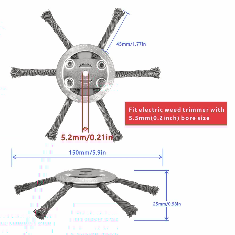 Mit diesem robusten Drahtbürstenkopf entfernen Sie mühelos Unkraut, Moos und Schmutz auf Einfahrten, Gehwegen und im Garten. Dank verdrehter Stahlborsten bietet der Aufsatz eine hohe Lebensdauer und starke Reinigungswirkung – ideal für Beton, Pflastersteine und Kieswege. Die einfache Montage passt auf alle gängigen Trimmer mit 5,5 mm Aufnahme.
