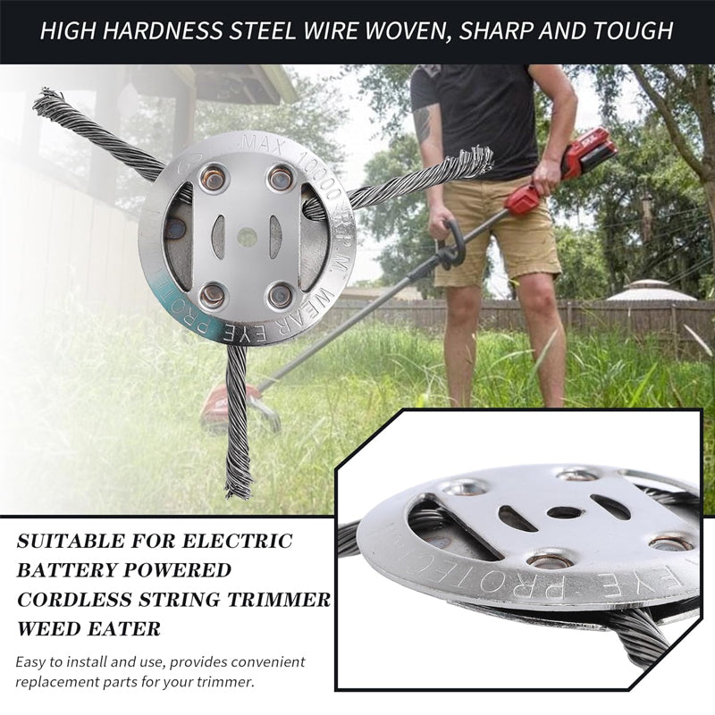 💪Hochwertiger Stahlseil-Trimmerkopf Gefertigt aus langlebigem Stahlseil, bietet extra Festigkeit und Langlebigkeit. Extrem widerstandsfähig, bleibt auch bei Kontakt mit harten Materialien wie Beton oder Steinen effektiv. Scharfe Drahtbürstenklingen verbessern die Effizienz der Arbeit erheblich.