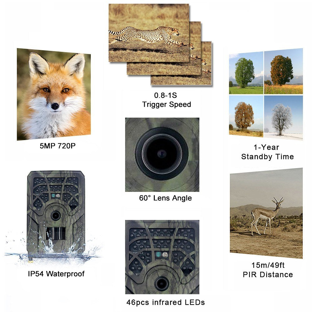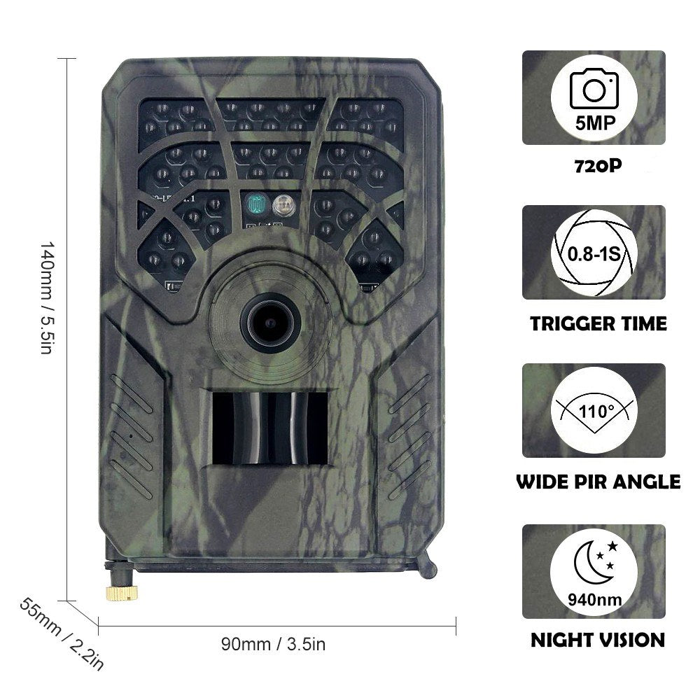 720P 5MP Trail- & Wildkamera - Bewegungsmelder Jagd- & Wildbeobachtung mit 46 LEDs Nachtsicht, IP54 Wasserdicht für den Außeneinsatz