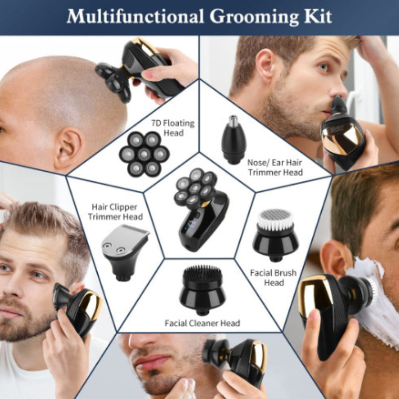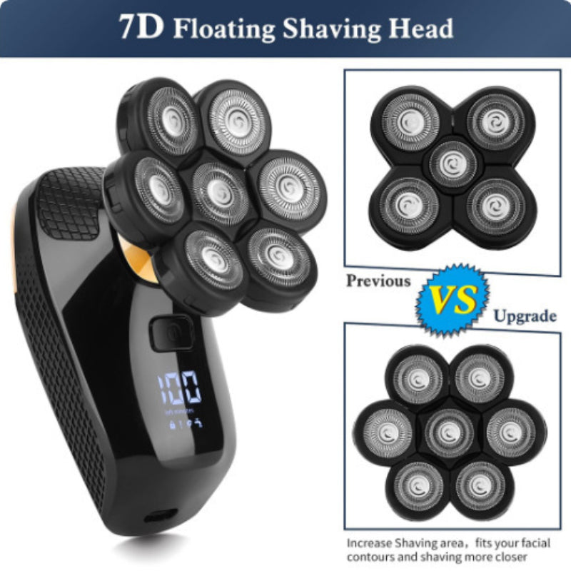 Dieser elektrische Rasierkopf ist der verbesserte 7D bewegliche Kopf, der ergonomisch gestaltet ist und sich automatisch an jede Kontur des Gesichts, des Nackens und sogar des Kinns anpasst, um die Gesichtszüge optimal zu erfassen und für eine detaillierte Rasur zu sorgen. Er kann sowohl als Glatzenrasierer als auch als Rasiermesser verwendet werden und bietet Ihnen einangenehmes und sanftes Rasurerlebnis.