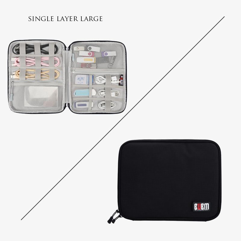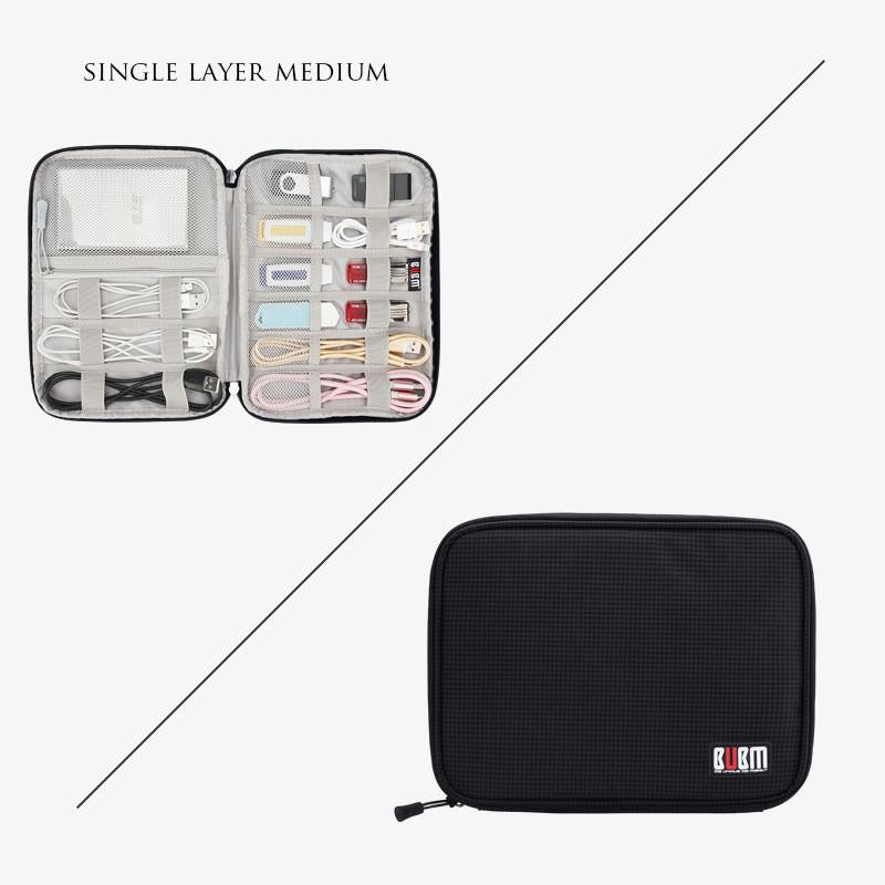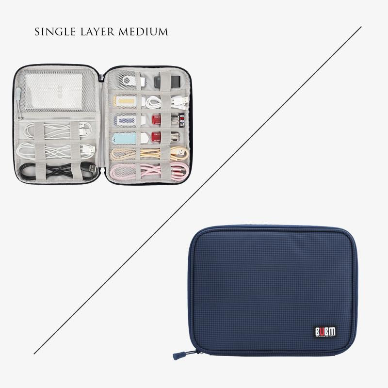 Verbringst du oft viel Zeit mit der Suche nach Kabeln, Adaptern und Geräten? Oder vergisst du gelegentlich etwas? Diese praktische Tasche zur Aufbewahrung hilft dir, das Chaos zu beseitigen.Mit Reißverschlussfächern für die sichere Aufbewahrung deiner wichtigen Gegenstände. Elastische Schlaufen für Kabel und Leitungen.Netzfächer für kleinere Gegenstände.Erlebe einen sanften und reibungslosen Reißverschluss. Schließe alles sicher ein, packe es in deine Tasche und verliere nichts auf deinen Reisen!Hochwertige Nähqualität.Wasser- und staubdicht.