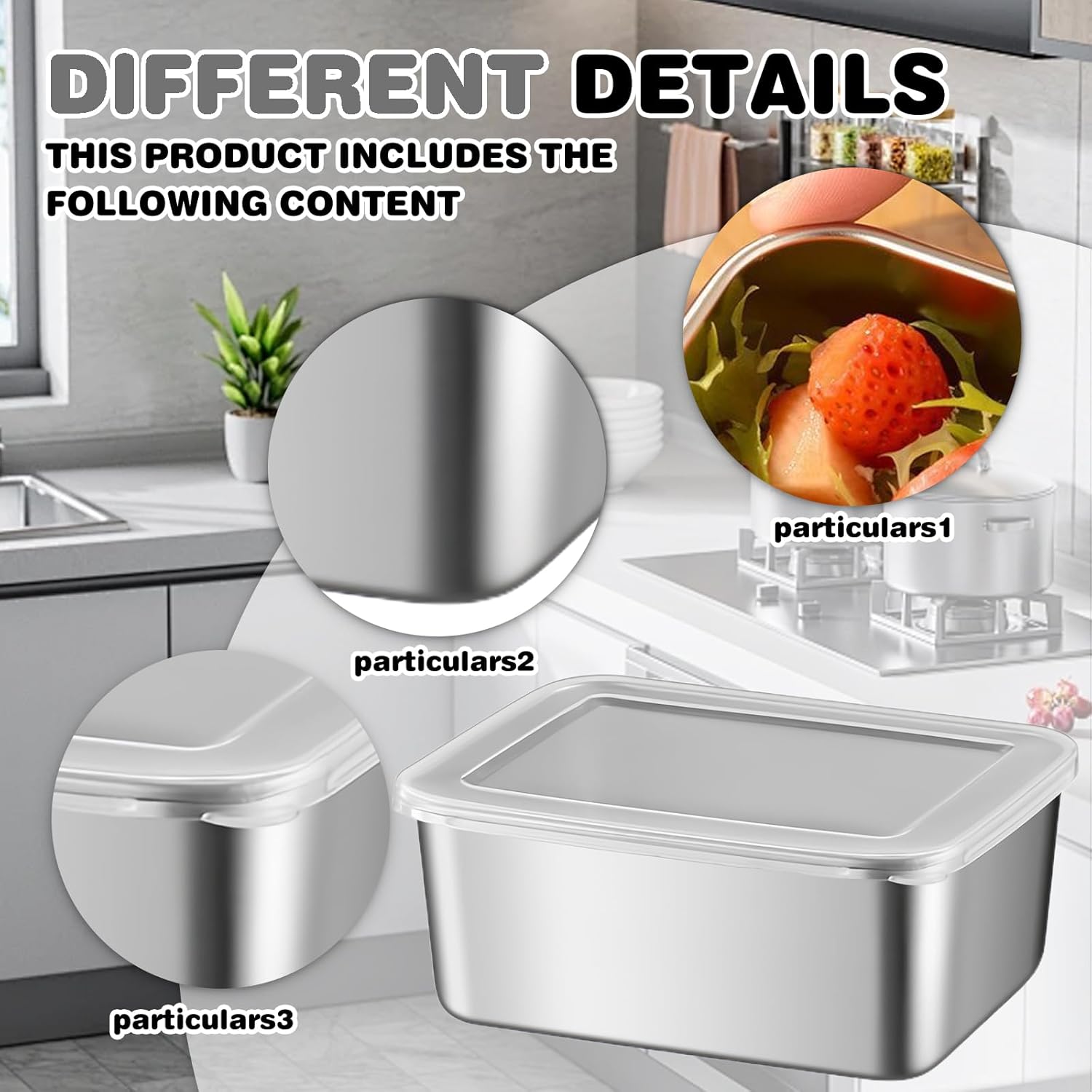 Set mit 6 Lebensmittelbehältern mit Deckeln: 650ml Meal Prep Boxen, Edelstahl Aufbewahrungsbehälter, geeignet für Ofen, Gefrierschrank und Spülmaschine, BPA-frei. 1. Die Lebensmittelbehälter mit Deckeln sind mit einem fest schließenden, transparenten Deckel ausgestattet, um sicherzustellen, dass die Lebensmittel versiegelt aufbewahrt werden und Geruchsbildung verhindert wird. Das durchsichtige Design der Deckel ermöglicht es den Benutzern, einen einfachen Blick auf den Inhalt der Box zu werfen, wodurch häufiges Öffnen vermieden wird. Dies reduziert die Zeit, in der die Lebensmittel der Umgebung ausgesetzt sind, und bewahrt deren Frische. 2. Diese Vorratsdosen bestehen aus hochwertigem Edelstahl, was ihnen eine hervorragende Haltbarkeit verleiht. Sie sind kratzfest und resistent gegen Beschädigungen. 3. Die Meal Prep Boxen sind mit einem innovativen Dichtungsmechanismus ausgestattet, der dafür sorgt, dass die Lebensmittel stets optimal frisch bleiben. Die Dichtigkeit zwischen Deckel und Behälter ist hoch, sodass die Luft effektiv abgedichtet wird und eine Oxidation sowie Verderb von Lebensmitteln vermieden wird. Diese Aufbewahrungsbehälter mit Deckel verlängern nicht nur die Frische der Speisen, sondern halten auch den ursprünglichen Geschmack der Lebensmittel. Produktmerkmale: Material: rostfreier Stahl. Farbe: Silber. Inhalt: 650 ml. Abmessungen: 13,8 x 10,8 x 5,7 cm. Produktinhalt: 6 x Lebensmittelbehälter mit Deckeln