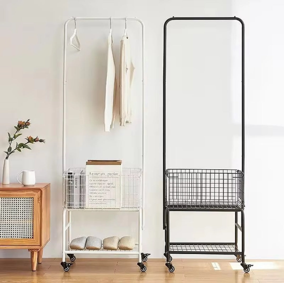 Kleiderständer mit einem praktischen Aufbewahrungskorb und einem Regal für Schuhe