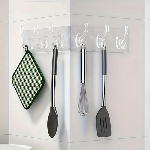 Schlüssel, Küchenwerkzeuge, Handtücher - was tun mit all diesen Dingen? Die selbstklebende Hakenleiste (6 Stk.) schafft Platz und sorgt für ein aufgeräumtes Zuhause, ganz ohne Werkzeug oder komplizierte Montage. Einfach anbringen, sofort nutzen und jederzeit spurlos entfernen.