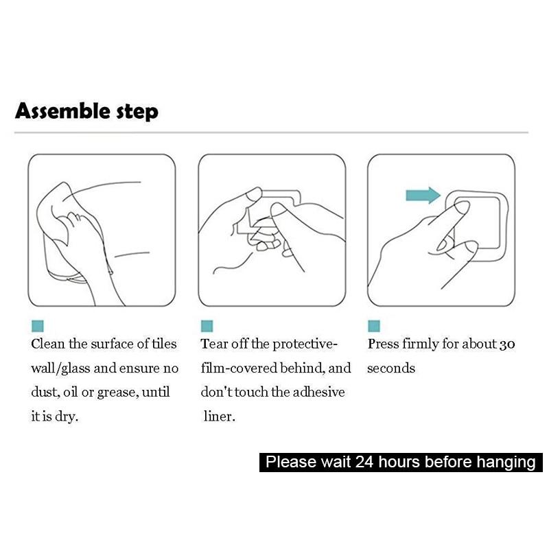 Dank der selbstklebenden Rückseite von 3M lässt sich die Montage mühelos durchführen, und die Haken gewährleisten zusätzlichen Halt und Stabilität – einfach abziehen und anbringen.