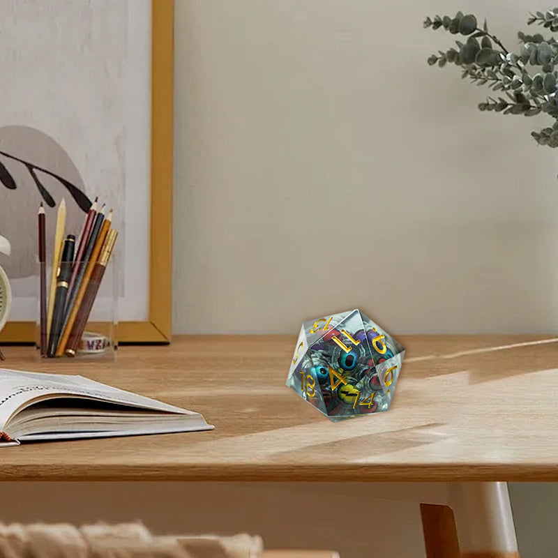 👁️Das Würfelset hat ein Auge, das in einer Flüssigkeit schwebt, sodass es frei schwebt und auf magische Weise immer nach oben schaut, egal wie es landet oder sich dreht.