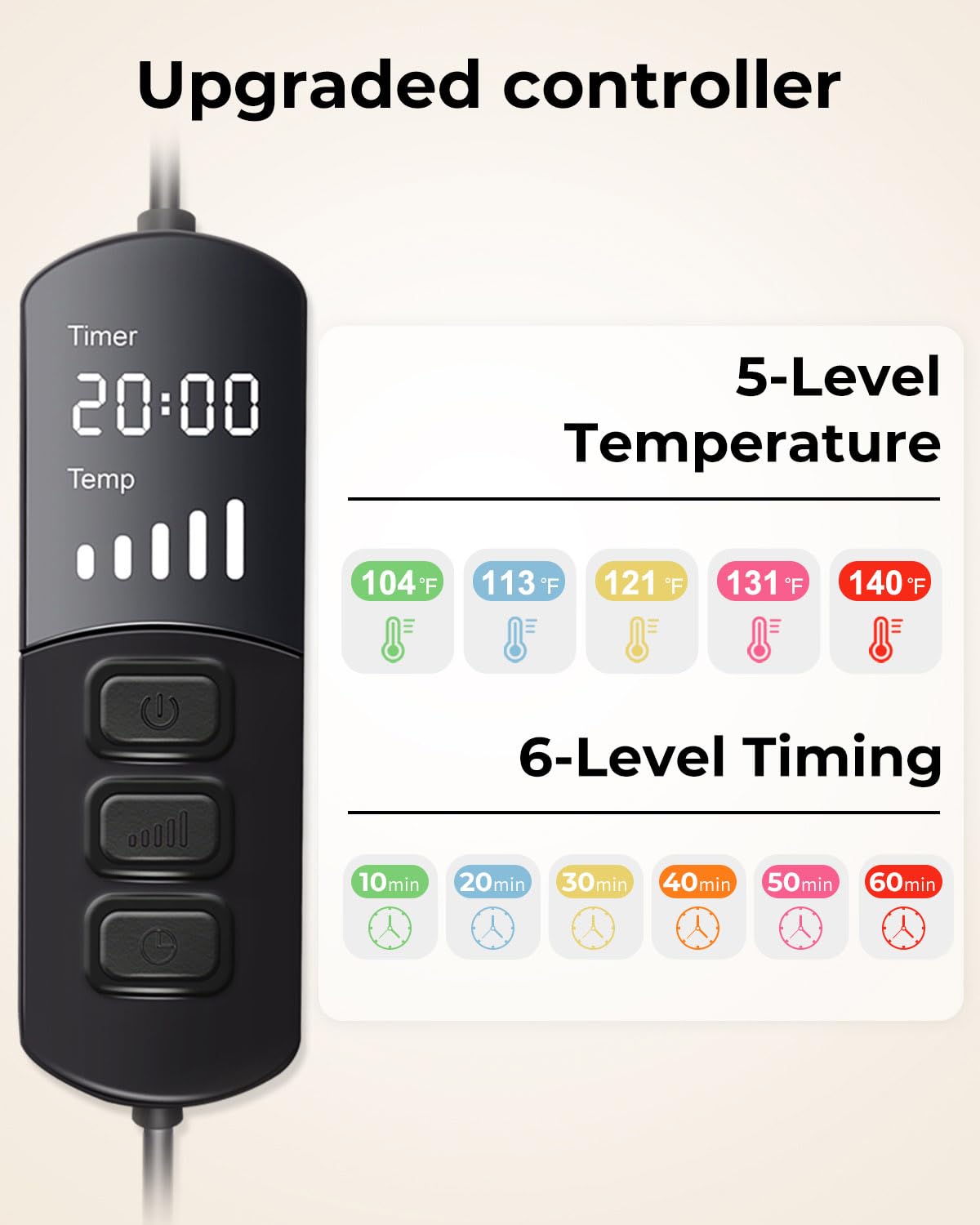 • INDIVIDUELL EINSTELLBARE WÄRME UND ZEIT: Fünf Heizstufen (40℃ bis 60℃) und sechs Zeitoptionen (10 bis 60 Minuten) zur Anpassung an Ihren persönlichen Komfort.