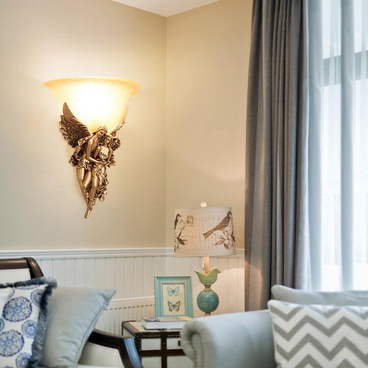 Frendorf | AureliaLux Vintage Wandlampe mit Engelsdesign | Europäischer Stil | Glaselemente | Perfekte Beleuchtung für Flur und Wohnzimmer