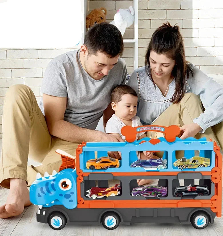 Der klappbare Dino Rennwagen ist weit mehr als nur ein Spielzeug – er bietet sowohl Spaß als auch Ordnung. Deine Kinder können all ihre Autos sammeln, sortieren und auf aufregende Reisen mitnehmen. Der Truck hält die Autos sicher an ihrem Platz und lässt sich bequem transportieren, egal ob drinnen oder draußen.