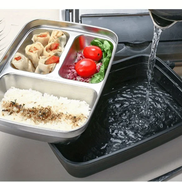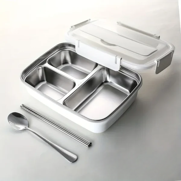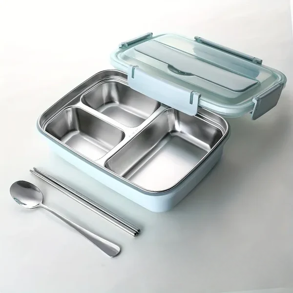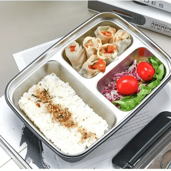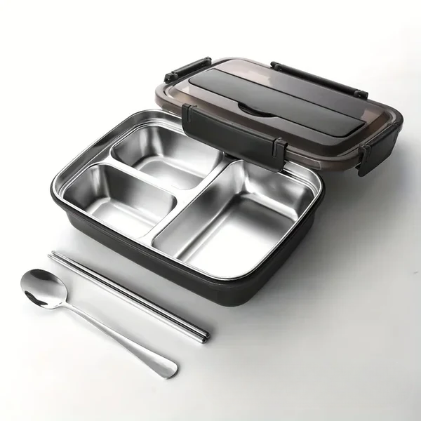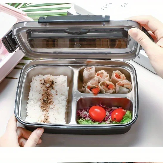 Diese Lunchbox ist aus hochwertigem Edelstahl gefertigt und ist nicht nur robust, sondern verfügt auch über ein zuverlässiges, auslaufsicheres Design. Das 3/4 Fächer-System ermöglicht es Ihnen, verschiedene Lebensmittel getrennt und frisch den ganzen Tag über zu halten.