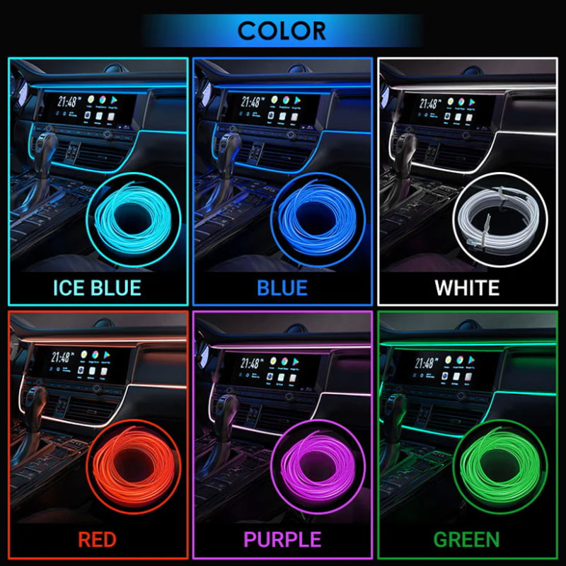【Einfache Installation】Der Innenraumlichtstreifen kann einfach in den Raum oder Spalt des Armaturenbretts und der Innenverkleidung des Fahrzeugs oder in die Nut eingeführt werden, was sehr geeignet ist, um das Innere des Autos zu dekorieren, wie z. B. Tür und Armaturenbrett usw.
