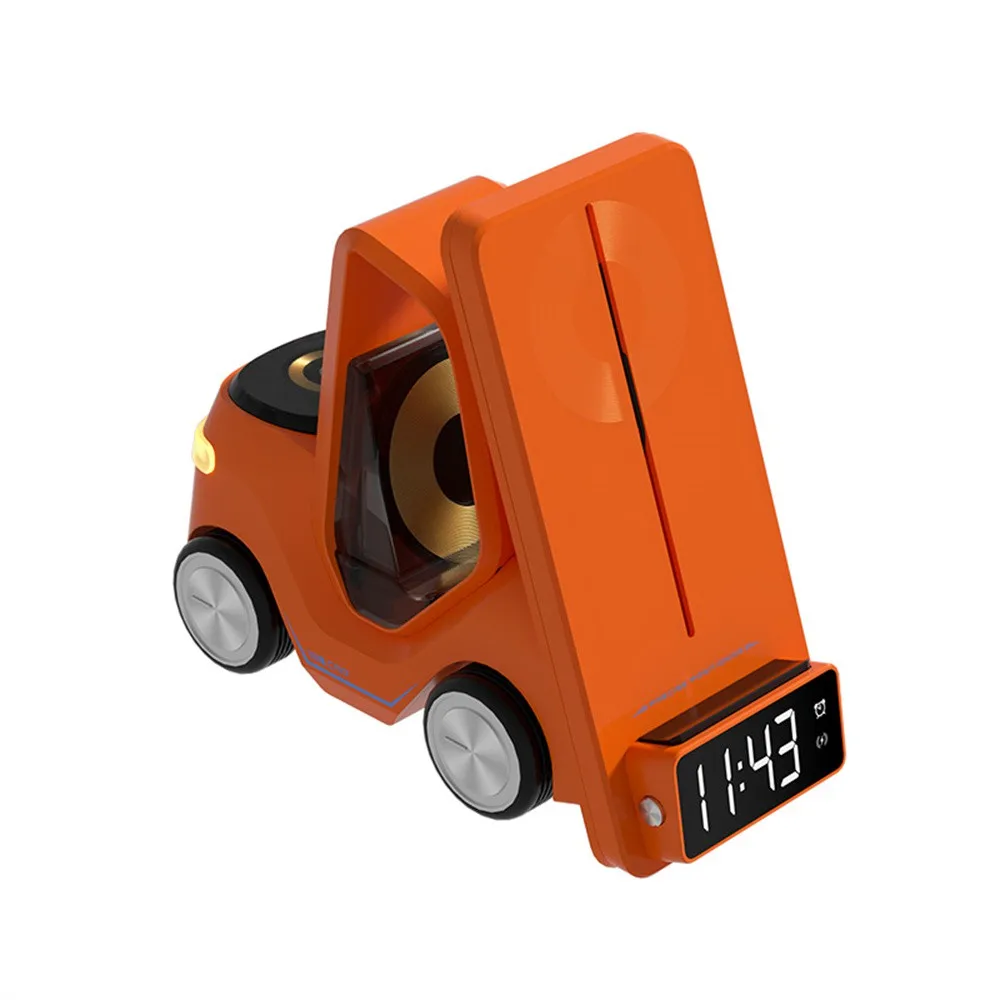 Erneuern Sie Ihren Nachttisch oder Arbeitsplatz mit einer Auto-förmigen drahtlosen Ladestation & einem LED-Wecker, die Funktionalität und Design harmonisch vereint. Diese 3-in-1 drahtlose Ladestation wurde entwickelt, um Ihr iPhone, Ihre Apple Watch und Ihre AirPods gleichzeitig aufzuladen und hält Ihre wichtigen Geräte stets bereit. Ausgestattet mit einem integrierten LED-Wecker und einem Umgebungslicht stellt sie die perfekte Verbindung von Komfort und modernem Stil dar.