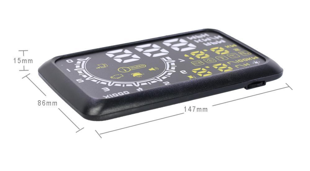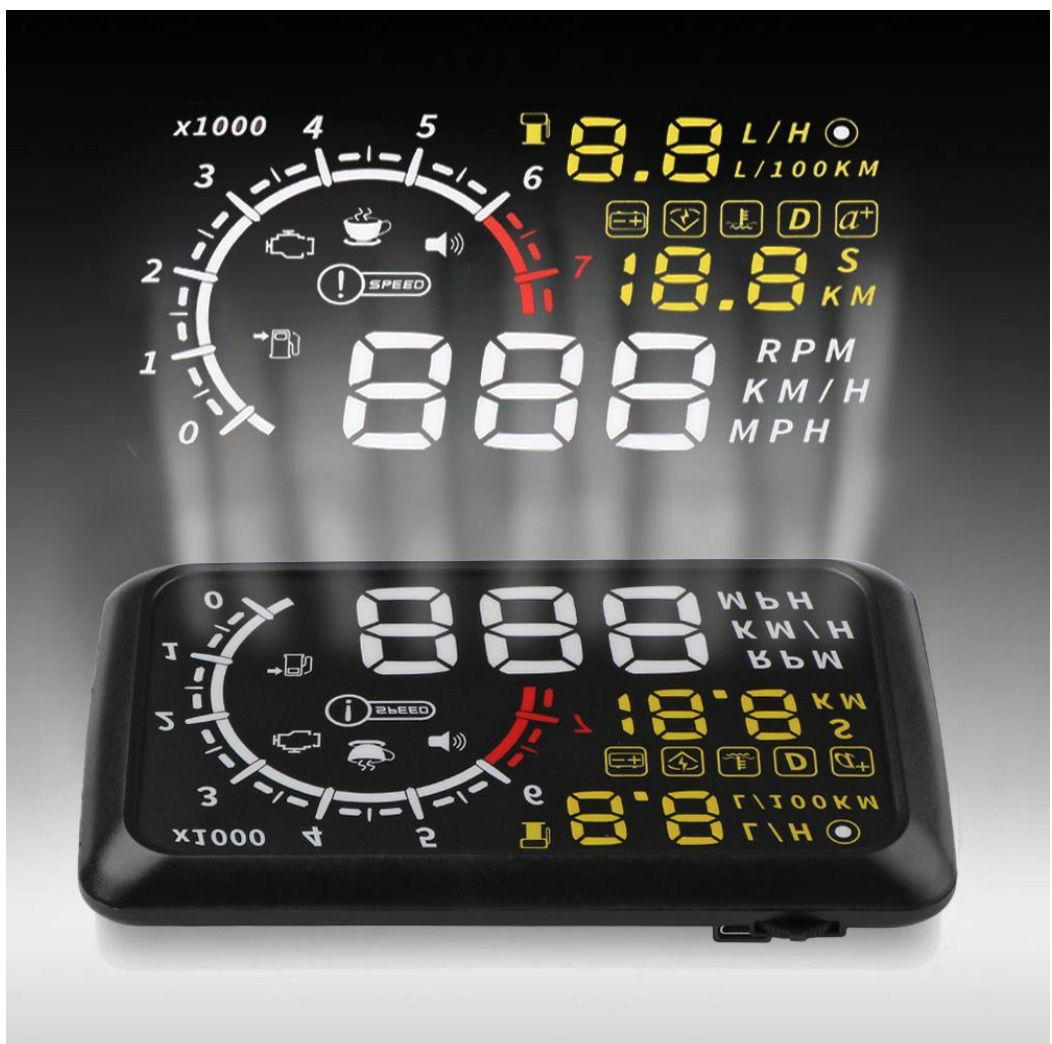 Dieses Autokopf-Anzeigegerät erlaubt es dem Fahrer, die Informationen sofort zu erfassen, ohne den Blick abwenden zu müssen, was äußerst hilfreich zur Verringerung von Verkehrsunfällen ist. Es beseitigt die Notwendigkeit, ständig nach unten zu sehen, und das Display alarmiert Sie bei Bedarf.