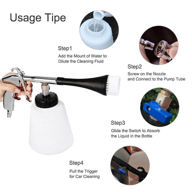 Die Autoinnenreinigungsmaschine, die mit einer Luftdrucksprühdüse ausgestattet ist, ermöglicht eine äußerst schnelle und effektive Reinigung auf 99% aller Oberflächen.