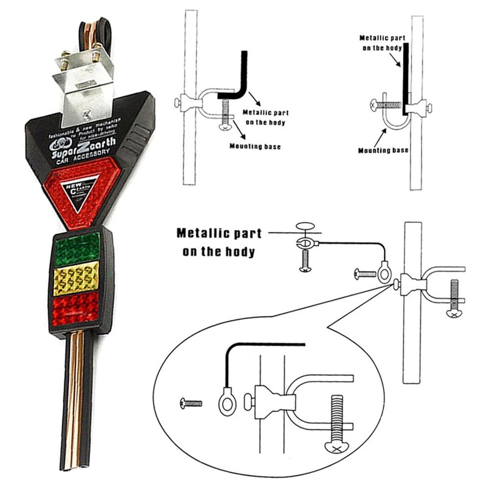 Verwendung von Schrauben zur Befestigung am Auspuffrohr des Autos, elektrostatische Entladung, hat auch einen sehr guten dekorativen Effekt. Bis zu etwa 35 cm/13,78 Zoll, bis zum Boden verlängert, wodurch die statische Elektrizität gründlicher entfernt werden kann.