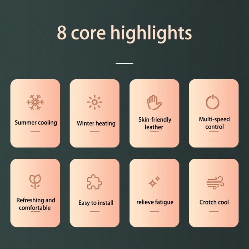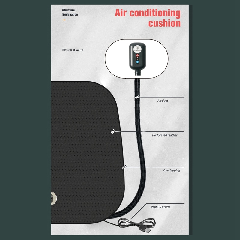 • Wenn das Autositzkissen mit kalter oder warmer Luft gefüllt ist, verteilt sich das Gas kontinuierlich nach oben, so dass die Kontaktfläche des Körpers eine effiziente Wärmeabgabe oder Wärmehaltung aufrechterhält, damit der Körper aufgrund hoher Temperaturen nicht schwitzt und der Körper trocken und bequem bleibt. Dieses einzigartige Sitzkissen für das Auto ist im Winter warm und im Sommer kühl.