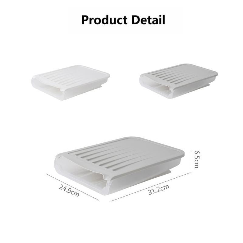 Müde davon, eine Schublade herauszuziehen oder eine Abdeckung abzunehmen, bevor Sie ein Ei herausnehmen? Das ist für Sie! Die restlichen Eier scrollen automatisch nach unten, wenn Sie eins herausnehmen. Ei-Halter mit einem Konzept des Minimalismus.