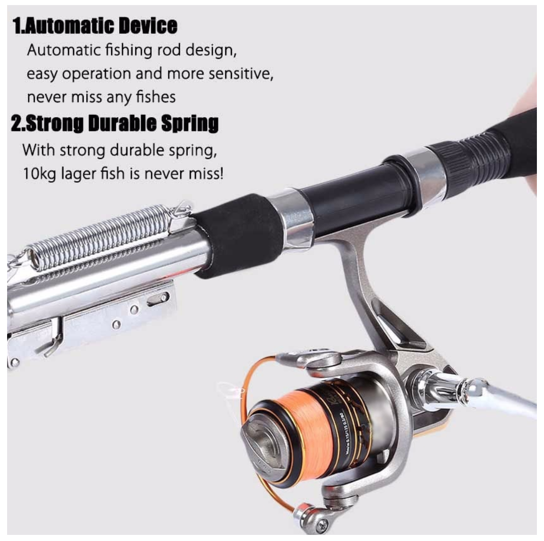 Lieben Sie das Angeln, aber finden es ermüdend, die ganze Zeit mit Ihrer Angelrute zu warten? Lassen Sie die automatische Angelrute die Arbeit für Sie übernehmen. Sie springt sanft an, sobald Sie einen Biss am Haken spüren.