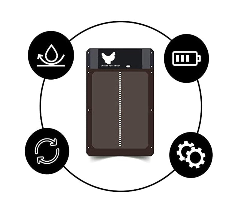 Das Automatische Hühnerstall-Tor stellt die optimale Antwort für Ihren Hühnerstall dar. Diese widerstandsfähige Tür ist stark genug, um selbst den aggressivsten Raubtieren zu widerstehen und schützt Ihre Hühner im Stall. Dank des eingebauten Lichtsensors öffnet sich die Tür morgens automatisch und schließt sich abends. Die batteriebetriebene Tür ist unkompliziert zu installieren und funktioniert in jedem Klima, was sie zur perfekten Wahl für die meisten Hühnerställe macht.