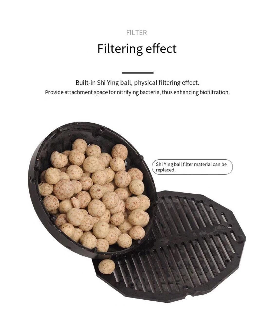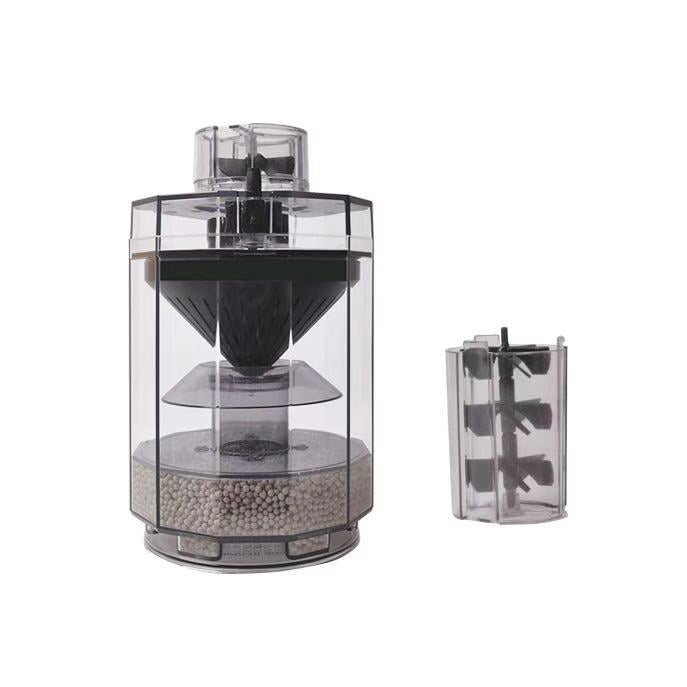 • Am Boden des Zylinders befindet sich eine biologische Filterkugel, die das Wachstum von nitrifizierenden Bakterien unterstützt, die für den Stickstoffkreislauf unerlässlich sind.