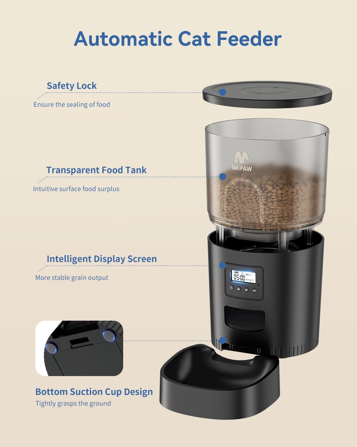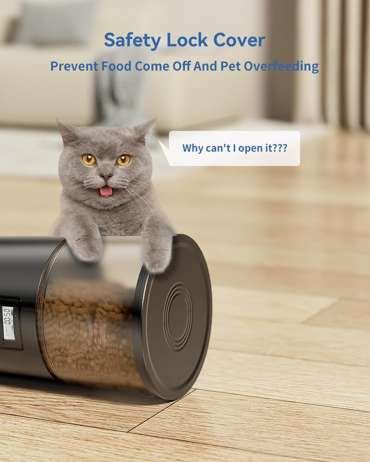 Seien Sie beruhigt, dass Ihr pelziger Freund pünktlich gefüttert wird. Mit unserem automatischen Katzenfutterspender können Sie sich entspannen und sorgenfreie Tage genießen, während Sie wissen, dass Ihre Katze glücklich und bestens versorgt ist.