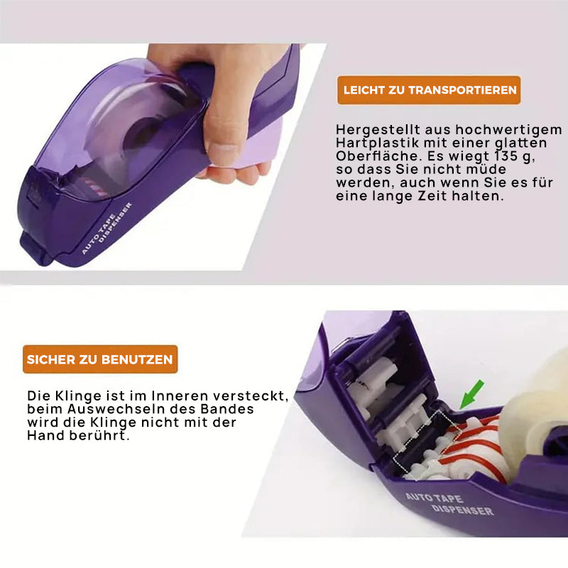 • Handlich und ohne Batterien: Der Klebebandabroller ist tragbar, leicht und benötigt keine Batterien, sodass Sie ihn überall anwenden können, ohne von einer Stromquelle abhängig zu sein oder den Batteriewechsel bedenken zu müssen.