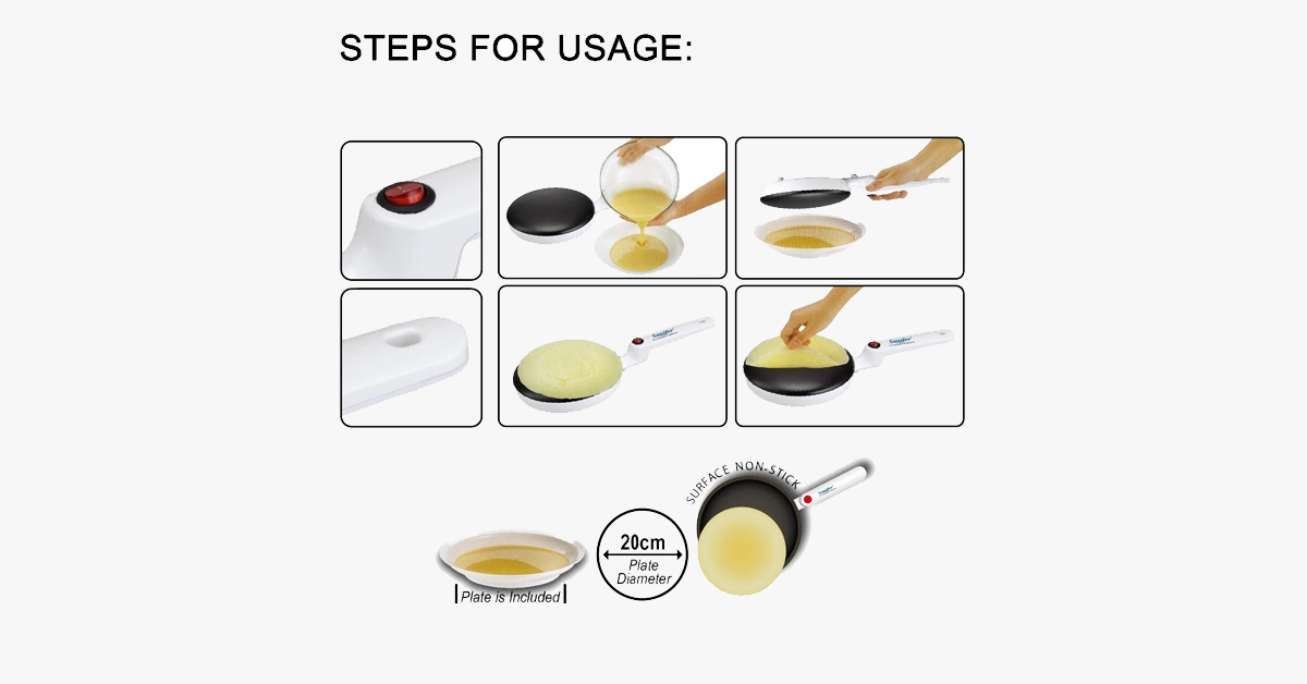• Eine wertvolle Ergänzung in der Küche: Wird mit einem Tablett und einem Eierbesen geliefert. Ideal, um jederzeit und überall Crêpes zuzubereiten. Lassen Sie uns mit dem Braten von Frühstückseiern und Pfannkuchen beginnen, um einen gesunden und rauchfreien Lebensstil zu pflegen.
