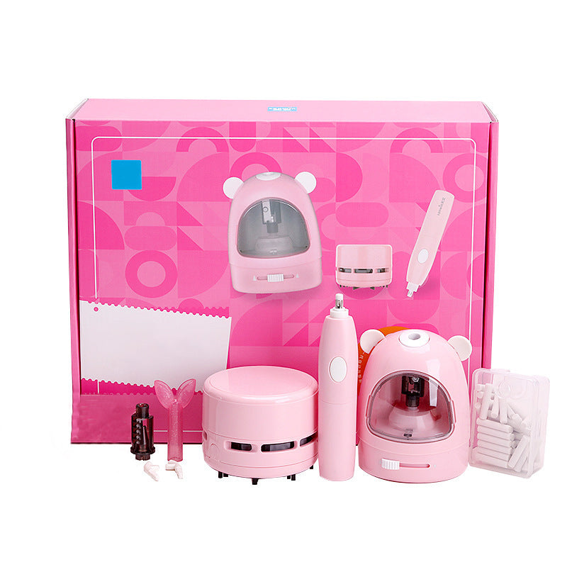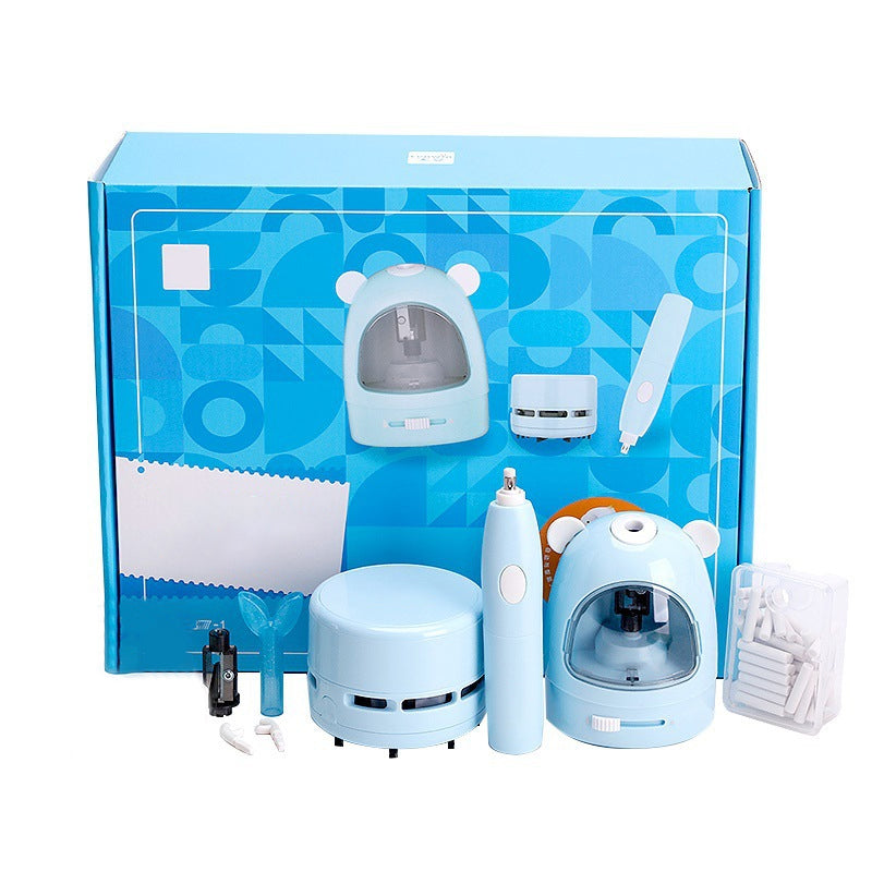 • 1 * Automatisches Schüler-Schreibwaren-Set (Bürosauger, Elektrischer Bleistiftanspitzer, Elektrischer Radierer, Radiergummi-Nachfüllpackung, Paar Bleistiftanspitzer-Zubehör, Nachfüller für Bleistiftanspitzer, Bleistiftverlängerungsdeckel)