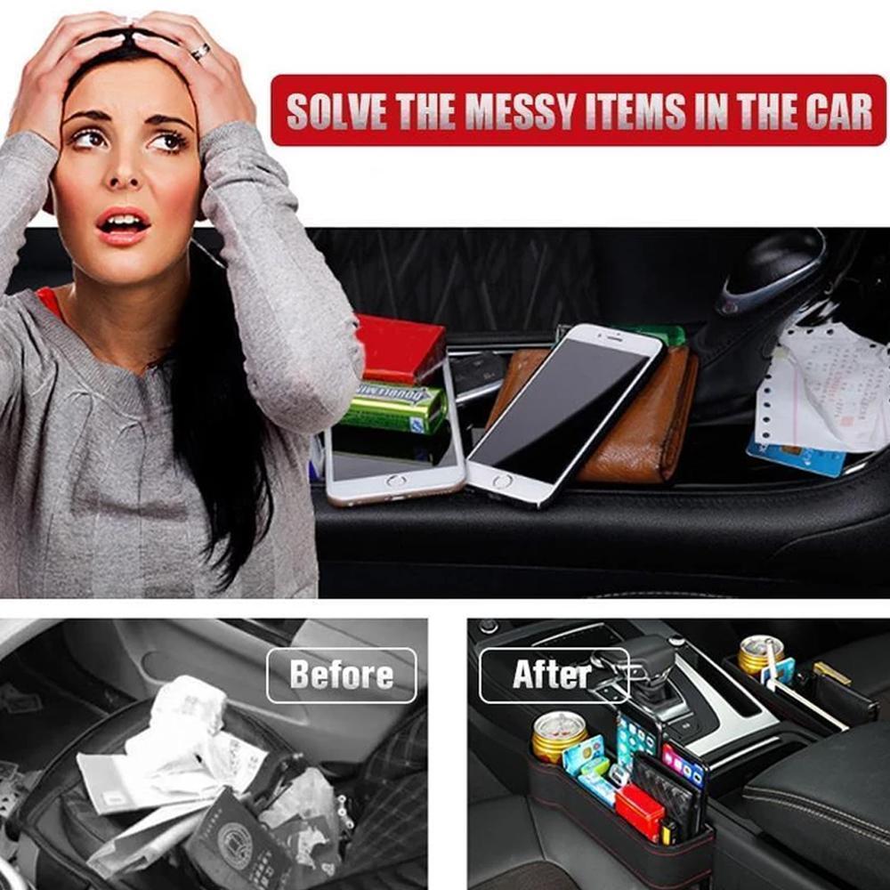 • Verringern Sie Ablenkungen während der Fahrt - Dieser Sitzauffänger für Ihr Fahrzeug wird Ihnen viele Male helfen, nicht nach Ihrem heruntergefallenen Handy, Karten, Geld, Schlüsseln usw. zwischen den Sitzen und der Mittelkonsole suchen zu müssen. Der Sitz-Organizer fängt Gegenstände auf, bevor sie in den Spalt fallen. Außerdem hält er Ihre wichtigen Sachen in Reichweite und organisiert Handys, Schlüssel, Stifte, Tablets und vieles mehr.