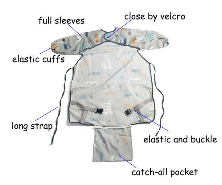 Das ist die ultimative Lösung für alle Eltern, die das Essen stressfreier gestalten möchten. Egal ob beim ersten Brei, Fingerfood oder bunten Kleckereien – dieses nützliche Lätzchen schützt die Kleidung zuverlässig und sieht dabei auch noch bezaubernd aus. Die langen Ärmel, das leichte Material und die wasserabweisende Oberfläche machen es zum perfekten Begleiter für jede Mahlzeit.