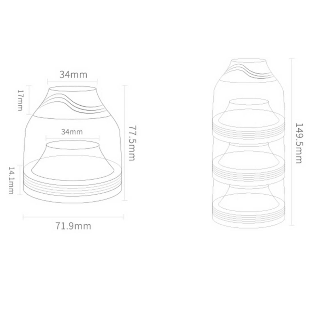 • 🔄 Flexibel stapelbar & teilbar: Jedes Fach kann einzeln verschlossen werden – perfekt für die Portionierung von Pulver, Obst oder Snacks.
