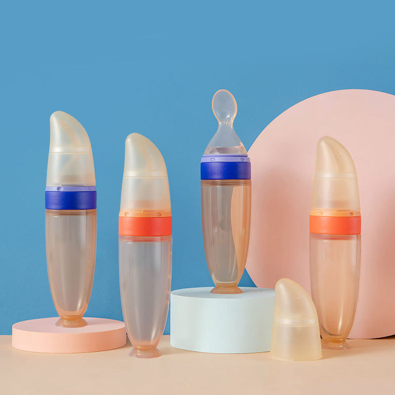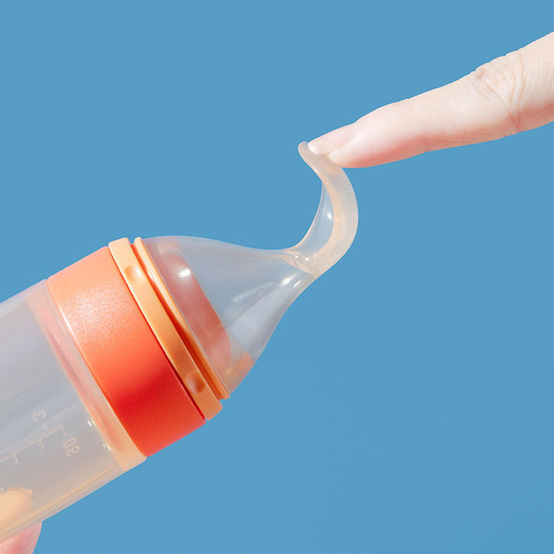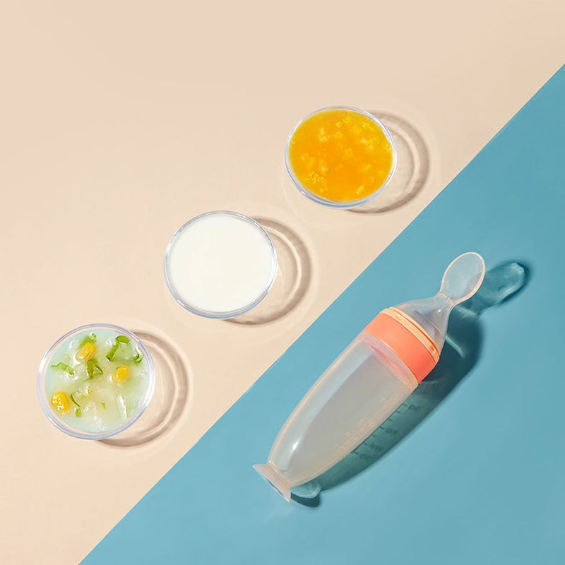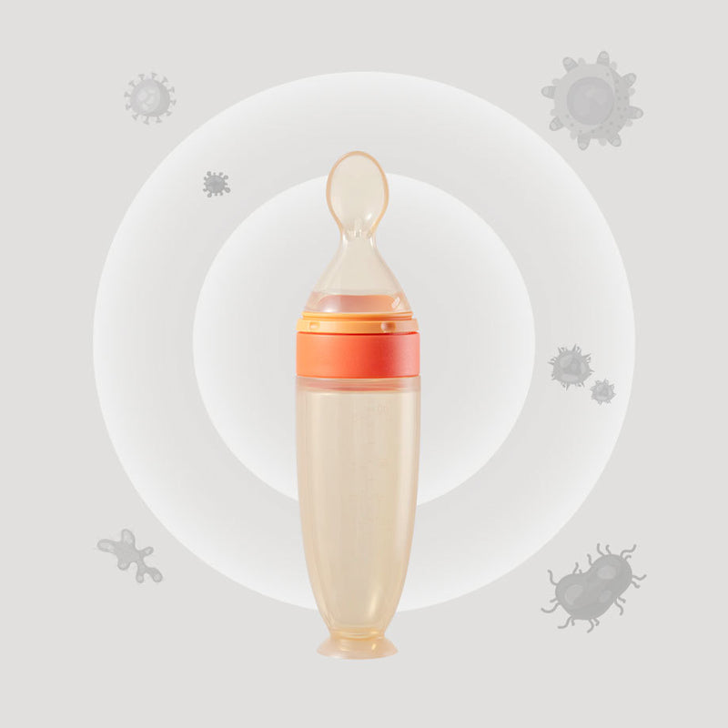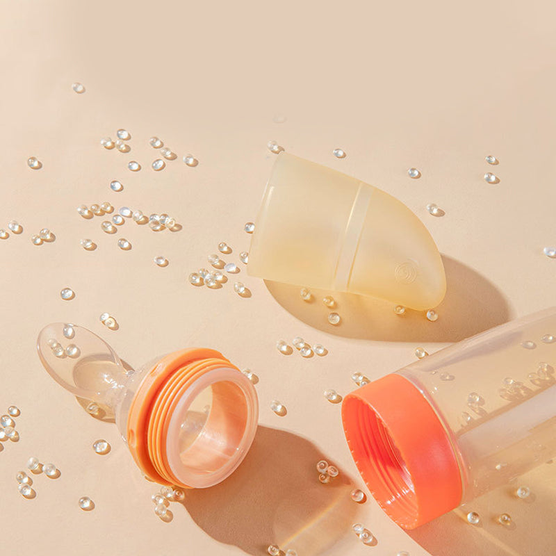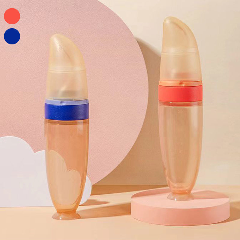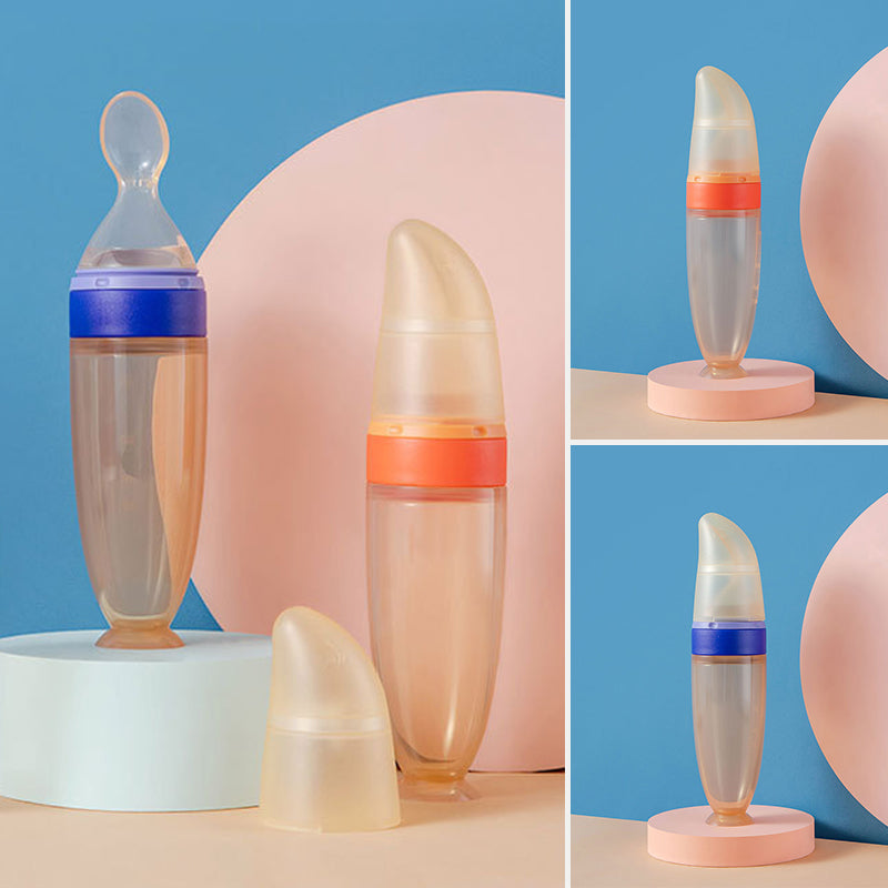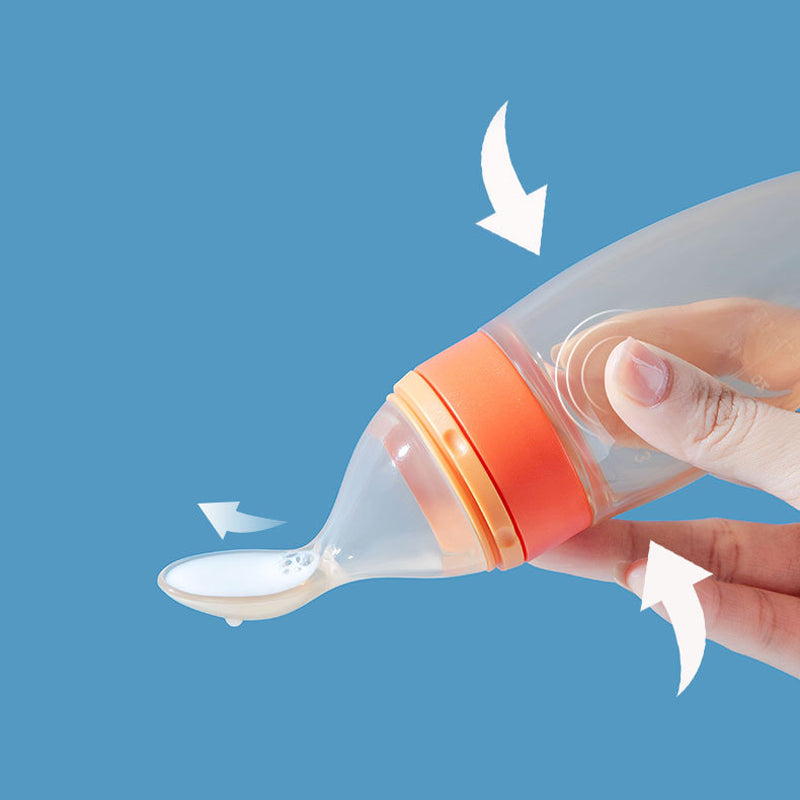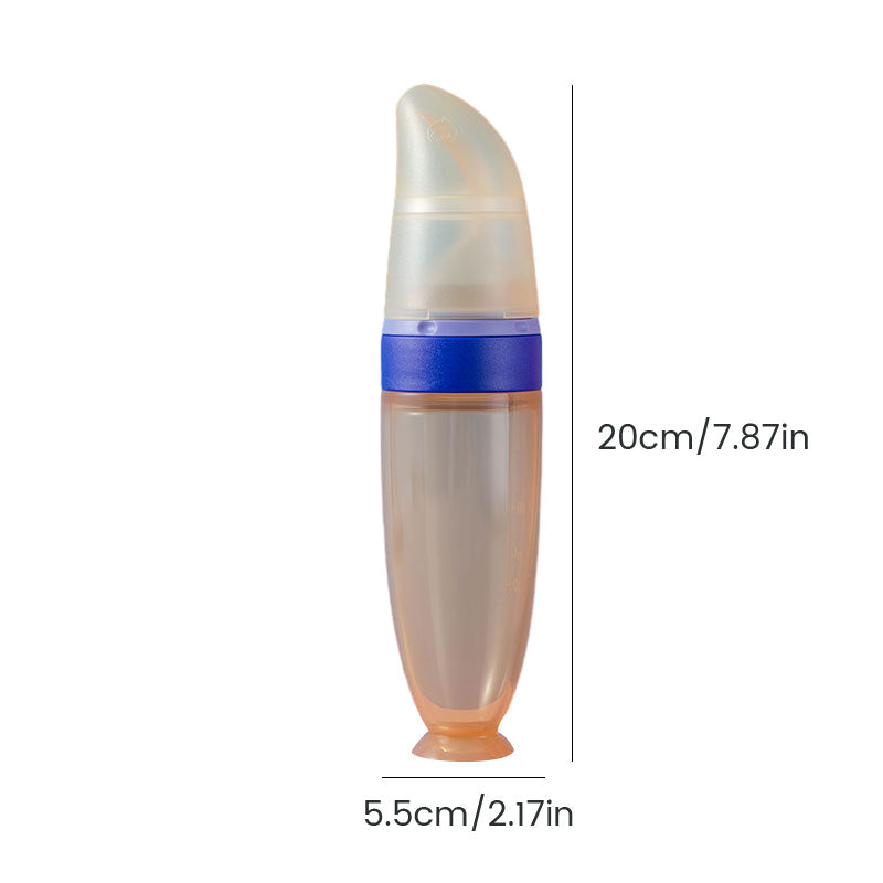 • Squeeze Design: Es ermöglicht den Eltern, ihr Baby mit einer Hand zu füttern und sich von chaotischen Essensmomenten zu verabschieden. Der Löffel ist besonders nützlich, wenn das Baby zahnt und keine Lust zu essen hat.