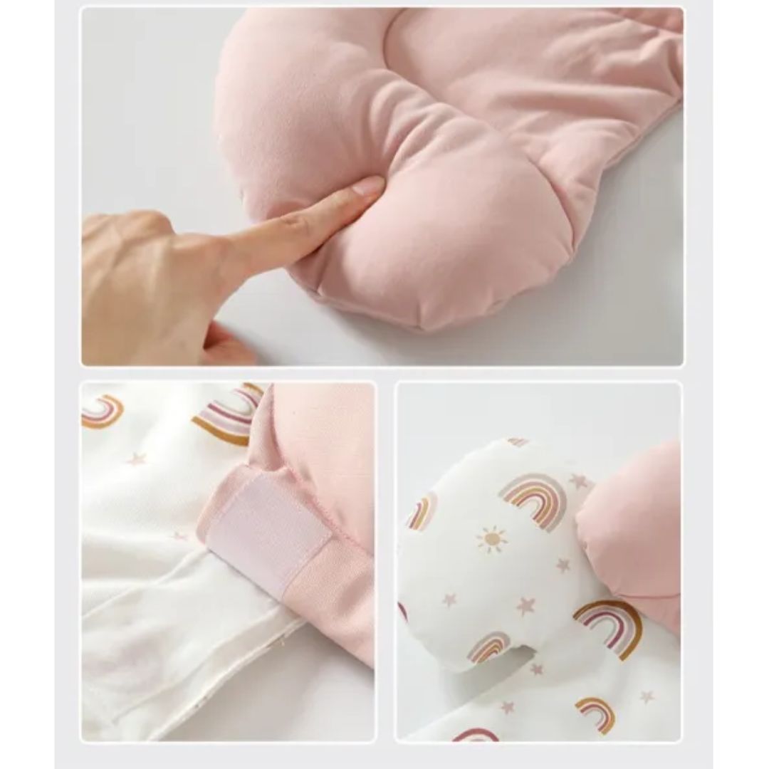 Neugeborene sitzen in Babyschalen oder Kinderwagen häufig zu locker – was unangenehm und unsicher sein kann. Der Babystützer mit Kopfstütze füllt diesen Übergang sanft aus und sorgt für die richtige Haltung Deines Babys. So beugst Du Verrutschen, ungünstigen Kopfhaltungen oder Druckstellen vor – und Dein Baby kann entspannt schlafen oder neugierig die Welt erkunden.