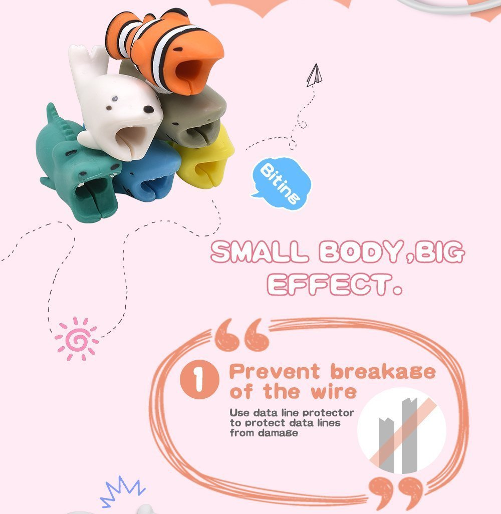 Baby Animal Kabelschützer erhältlich in: Hai, Robbe, Orca, Delfin, Grauer Hai, Eisbär, Pinguin, Fisch, Katze, Hund, Schwein, Maus, Panda, Koala, Löwe, Nilpferd, Igel, Krokodil, Schildkröte, Ente, Chamäleon, Hase, Frosch und Axolotl