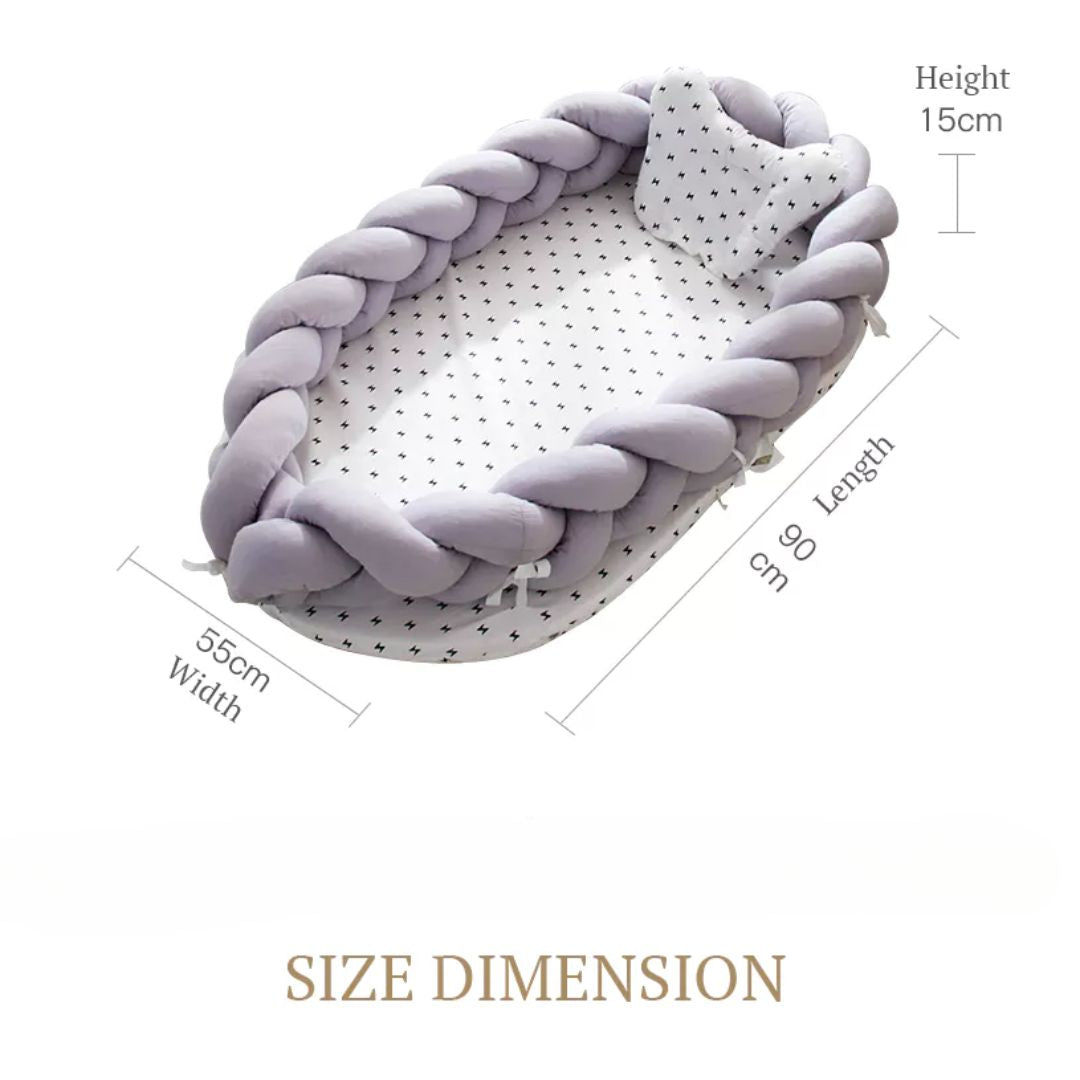 Das Babybett mit geflochtenem Rand bietet Ihrem kleinen Engel einen idealen Ort zum Kuscheln und Schlafen. Mit seiner sanften Polsterung und dem sicheren, geflochtenen Rand schafft dieses kuschelige Nest eine Atmosphäre von Geborgenheit und Behaglichkeit. Perfekt geeignet für das Kinderzimmer, die Couch oder für unterwegs – Ihr Baby wird es lieben, sich in diesem behaglichen Nest zu entspannen.