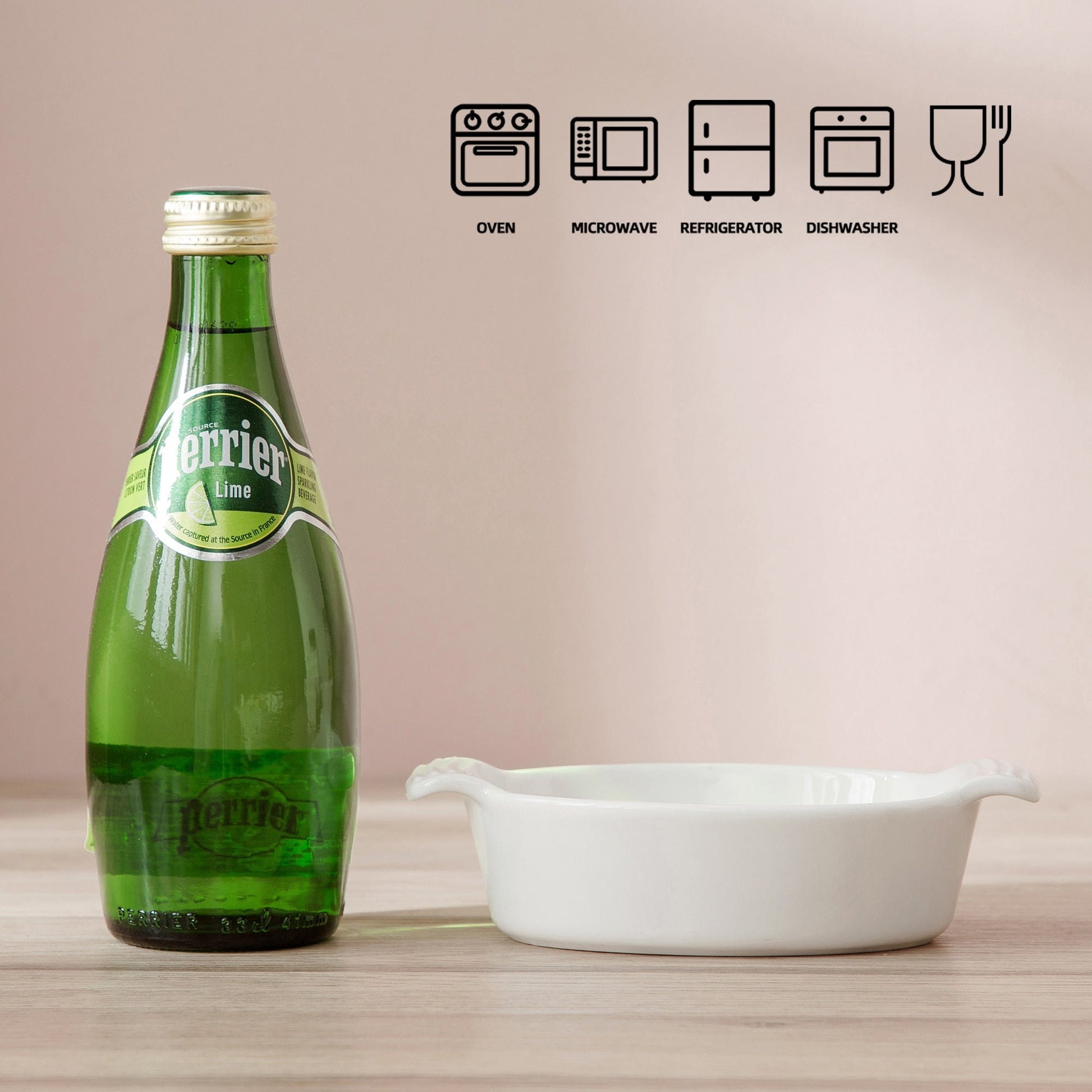 Merkmale: Hergestellt aus lebensmittelechtem, professionellem Porzellan, umweltfreundlicher und nicht toxischer Keramik, nunca sorgen Sie sich um schädliche Toxine, die in Ihr Essen gelangen. Perfekt kompatibel mit kaltem & heißem Essen, ohne dass Sie sich um Abplatzer, Kerben, Risse und Kratzer sorgen müssen. Mit einem kleinen "Ohren"-Griff auf beiden Seiten entworfen, der es Ihnen erleichtert, es aus dem Ofen oder Gefrierschrank zu nehmen. Außerdem sorgen die einfache cremeweiße Farbe, die glatte Oberfläche und die fließenden Linien dafür, dass Ihr Essen herausragender aussieht und Ihre Gäste beeindrucken! Diese Schalen sind nicht nur mikrowellen- und ofensicher, sondern auch spülmaschinengeeignet. Können direkt vom Ofen auf den Tisch gestellt werden, sicher bis 200C. Mit Griffen für einfacheres Tragen (Vorsicht bei Hitze). Ideal zum Servieren von Dips, Salsas, Dressings, Soßen, Vorspeisen und Beilagen. Genau die richtige Größe für Crème Brûlée, individuelle Cobbler, Cupcakes oder eine Vielzahl anderer Rezepte. Geeignet für den täglichen Gebrauch und festliche Anlässe.
