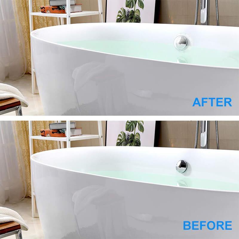 • Im Gegensatz zu Ablaufstopfen blockiert die bodenlose Badewanne den Überlauf nicht vollständig, sondern hebt ihn „einige Zoll“ an.