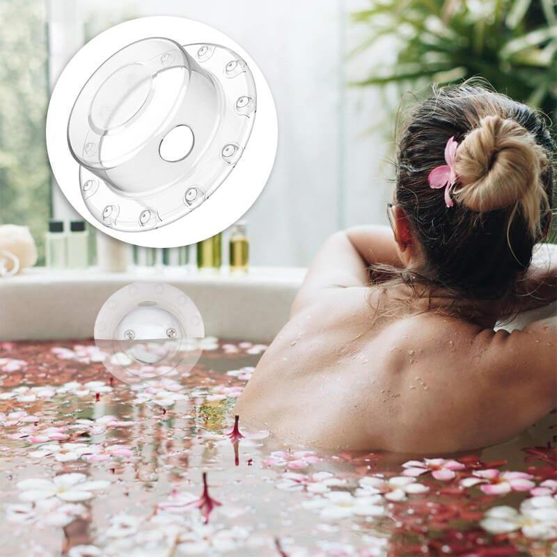 Unsere Badüberlaufabdeckung schließt sicher um Ihren Überlaufablauf und erhöht sicher die Wassertiefe. Das Ergebnis? Ein wärmeres, tieferes Bad, in das man eintauchen kann.