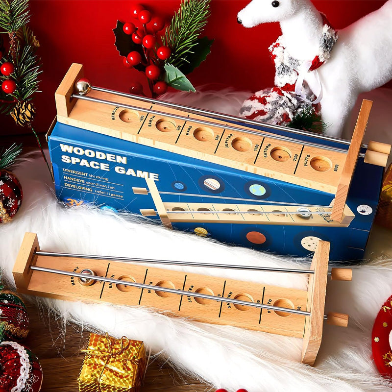 Dieses Spiel ist für 2 oder mehr Personen gedacht. Im Verlauf des Spiels lenken Sie den Griff, um die Metallstange zu bewegen und den Planeten in Bewegung zu setzen. Der Spieler, der den entferntesten Planeten erreichen kann, geht als Sieger hervor.