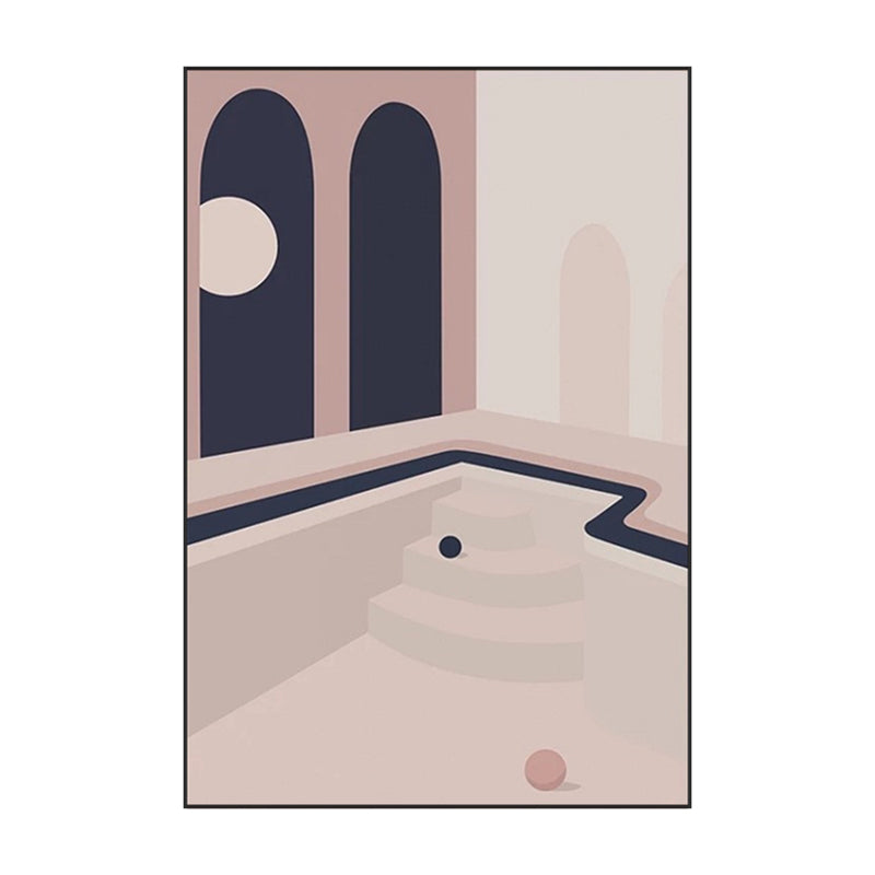 Frendorf | Ball und Patio Wandkunst für Schlafzimmer Architektur Leinwanddruck in Pink, Texturierte Oberfläche