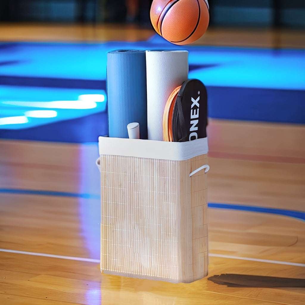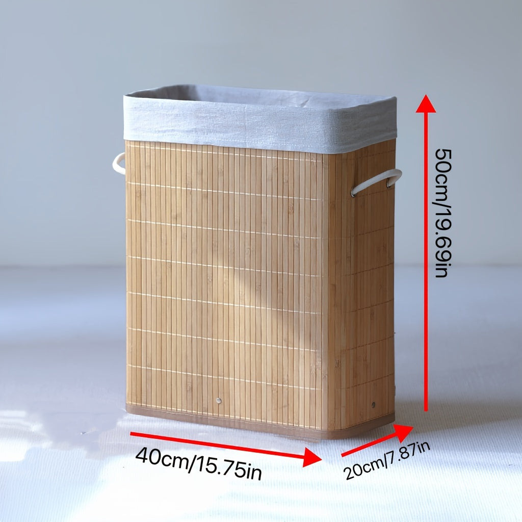 Dieser Bambusaufbewahrungskorb ohne Deckel bietet eine praktische und stilvolle Lösung zur Aufbewahrung verschiedener Gegenstände wie Sportgeräte, Kleidung oder Küchenzubehör. Das Material ist geruchlos und schimmelresistent, was es zu einer ausgezeichneten Wahl sowohl für das Badezimmer als auch für das Wohnzimmer macht. Seine schmale Form macht ihn ideal für enge Räume, während die robuste Bauweise eine langanhaltende Nutzung gewährleistet.