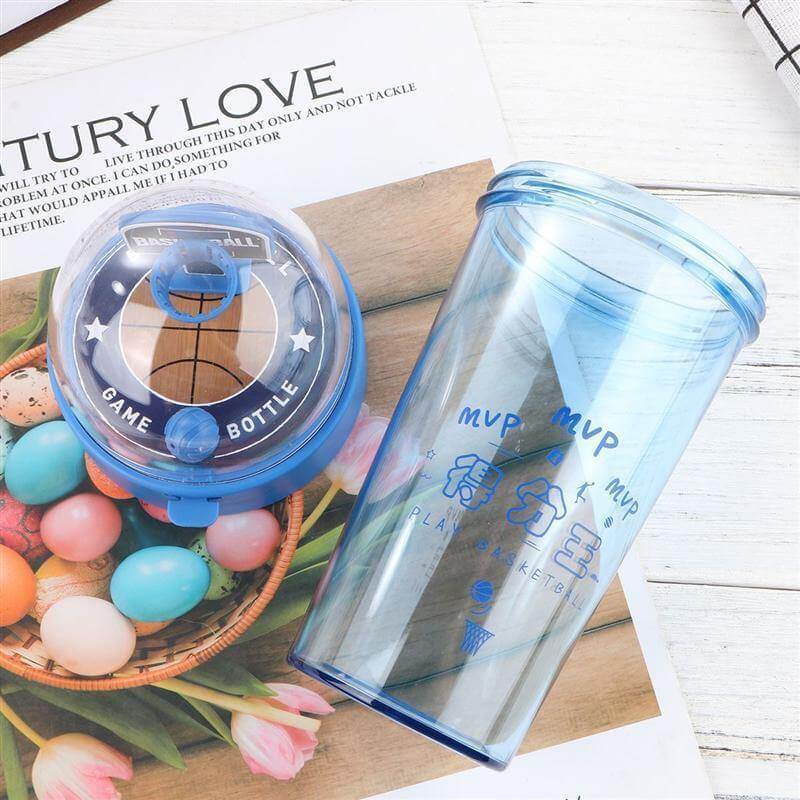 Diese Wasserflasche mit einem Mini-Basketballfeld oben drauf macht großen Spaß.