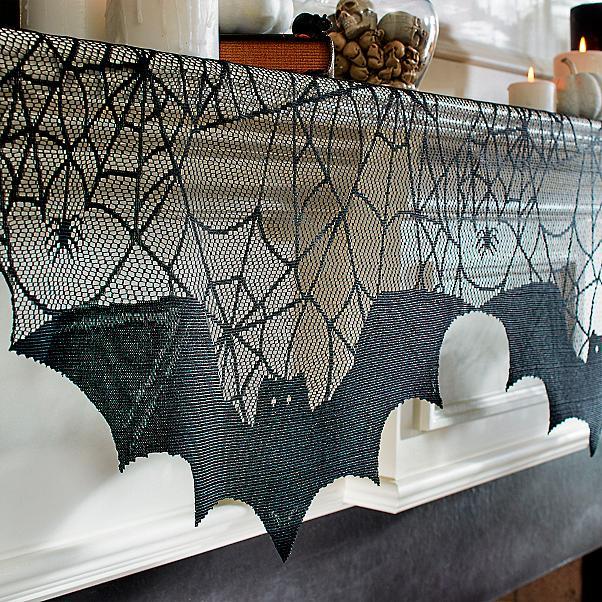 Wünschen Sie sich eine schaurige Atmosphäre für Halloween? Verzieren Sie und präsentieren Sie die schreckliche Stimmung während der Festnacht mit Bat Lace Mantel Schal. Ideal für Kaminregale, Tische, Türen, Fenster und mehr.