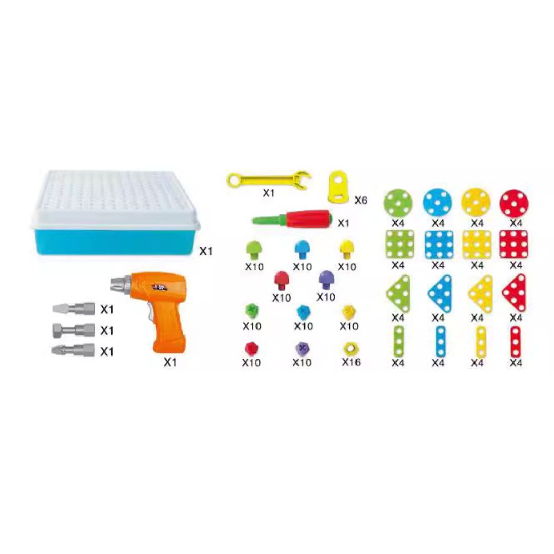 Dieser Bausteinschrauben Werkzeugkasten stellt das ideale Spielzeug für kleine Erfinder dar, die ihre Kreativität entfalten möchten! Mit einer Vielzahl von bunten Teilen und einer kinderfreundlichen Bohrmaschine haben Kinder die Möglichkeit, ihre Fantasie zu verwirklichen und eigene Bauwerke zu gestalten. Ob ein Haus, ein Fahrzeug oder eine farbenfrohe Blume – die Optionen sind nahezu unbegrenzt!