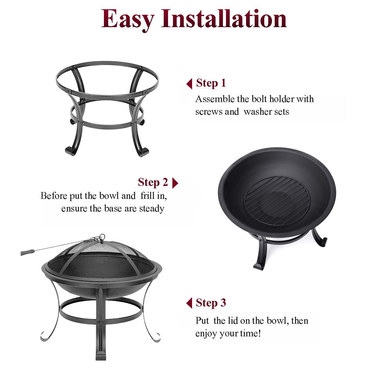 • EINFACHE MONTAGE – Setzt sich aus drei Teilen zusammen; dem Basis, der Schüssel und dem Deckel für eine einfache Wartung und Lagerung, wenn er nicht verwendet wird; GESAMTABMESSUNGEN: 22"(Durchmesser) x 18,5"(H); Tragfähigkeit: 110 lbs.