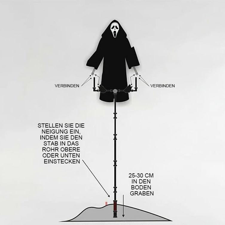 • Diese Vogelscheuche mit Grimasse erschreckt nicht nur die Vögel, sondern auch andere ungebetene Gäste, bis zu 2 Meter hoch.