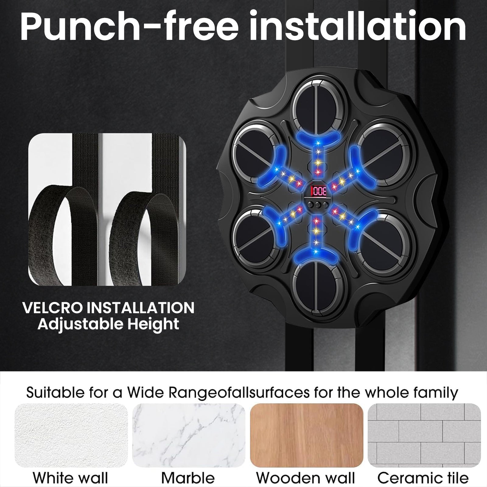 Verbinden Sie einfach Ihr Smartphone per Bluetooth und spielen Sie Ihre Lieblingsmusik ab, während Sie trainieren. Die interaktiven LED-Lichter sorgen dafür, dass das Training noch packender wird. Dank der verstellbaren Handschuhe und der verschiedenen Modi kann jeder, von Kindern bis zu Erwachsenen, diese Maschine nutzen und genießen.