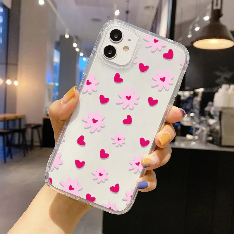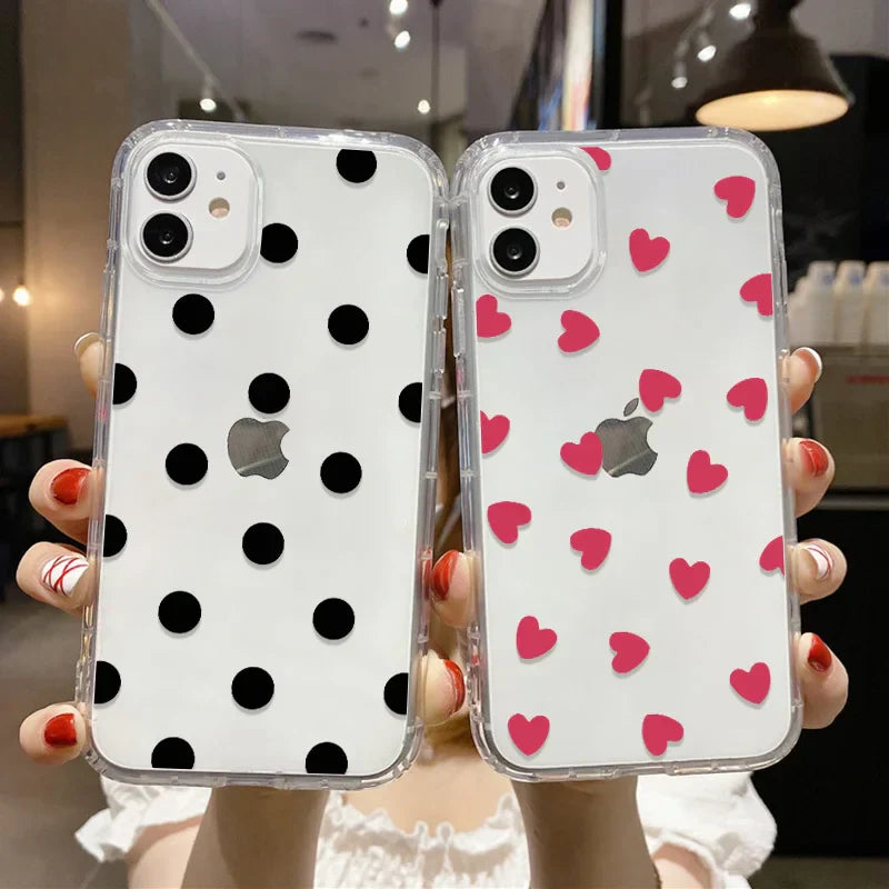 Frendorf | Bedruckte Herzmuster iPhone Stoßfeste Klarsicht-Hülle