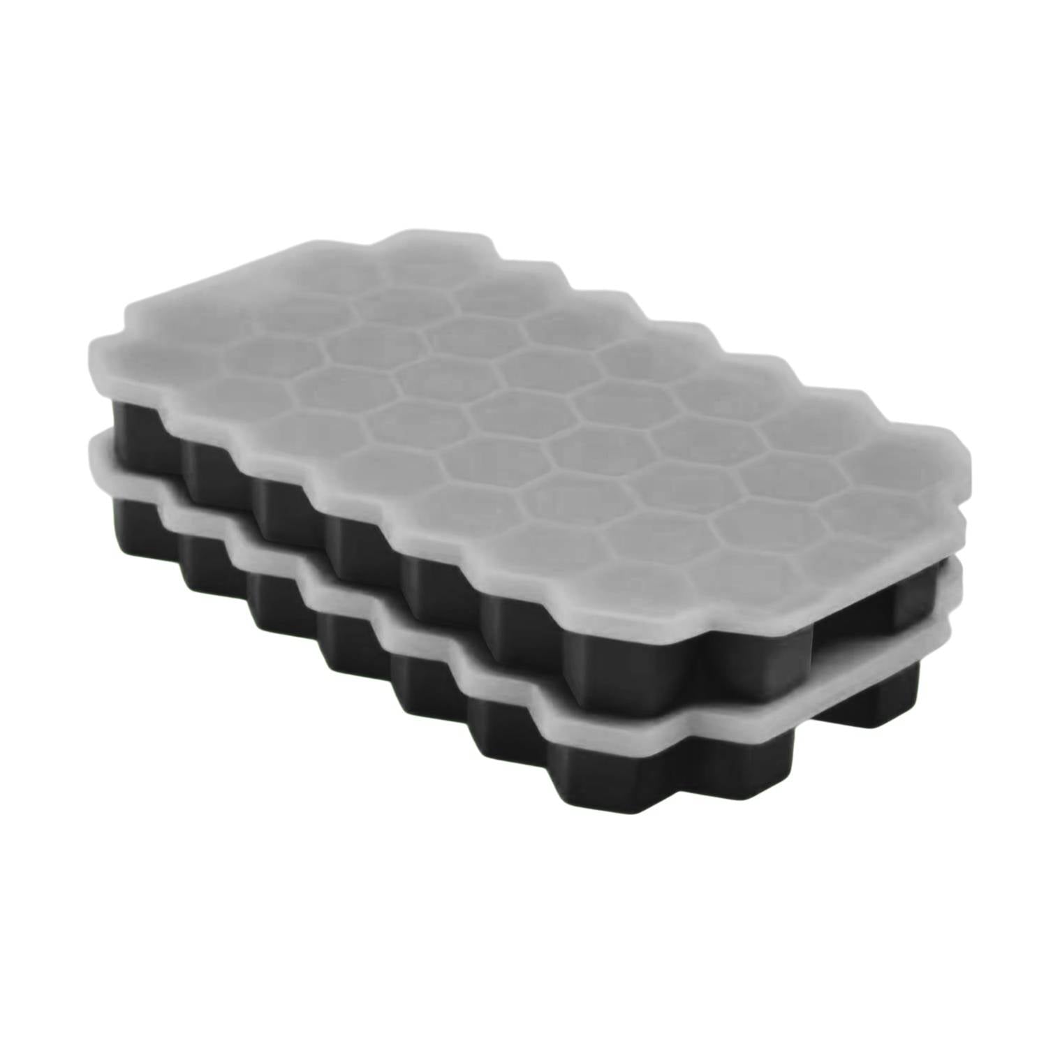 Frendorf | Benutzerdefinierte umweltfreundliche 37 Fächer runde Silikon-Eiswürfelschalenform mit Deckel Eisballmacher Schwarz